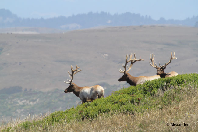 Point Reyes is home to 490 bird species, 40 species of land animals, and a dozen species of marine mammals. Pods of California gray whale migrate through here. Two resident mammal species nearly went extinct: tule elk and elephant seals.